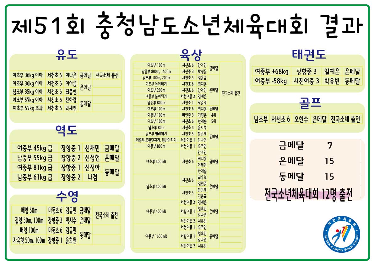 제51회 충청남도소년체육대회 결과